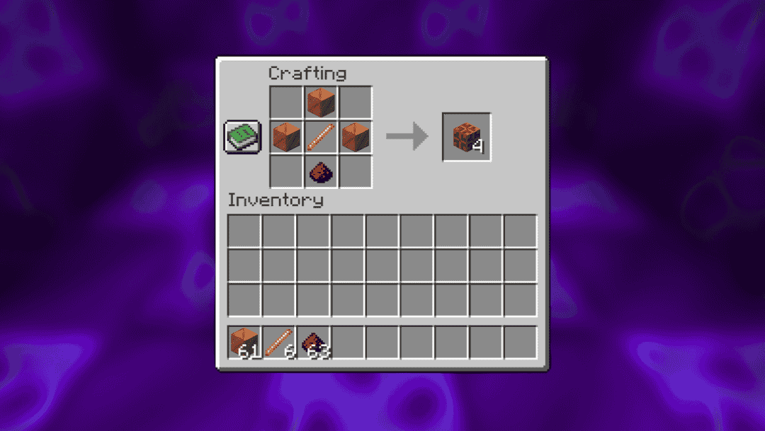Cut copper variants are smooth, allowing for finer decoration. Cut copper slabs and cut copper stairs are essential for detailed roof construction.