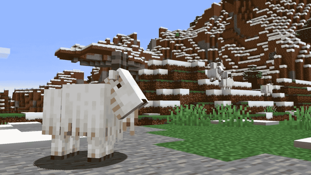 To get a Goat Horn, you first must find the mountain goat itself. These animals only spawn in cold, high-altitude, snowy environments that were first introduced in the Caves & Cliffs Update.