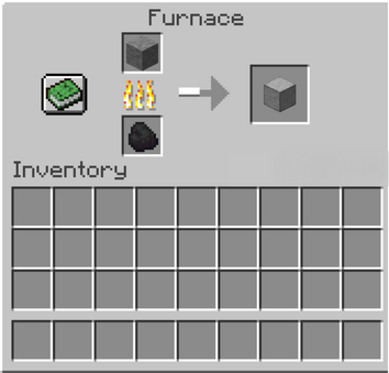 The second smelting step is what gives you the final, clean Smooth Stone block. This is the step of smelting stone into smooth Stone.